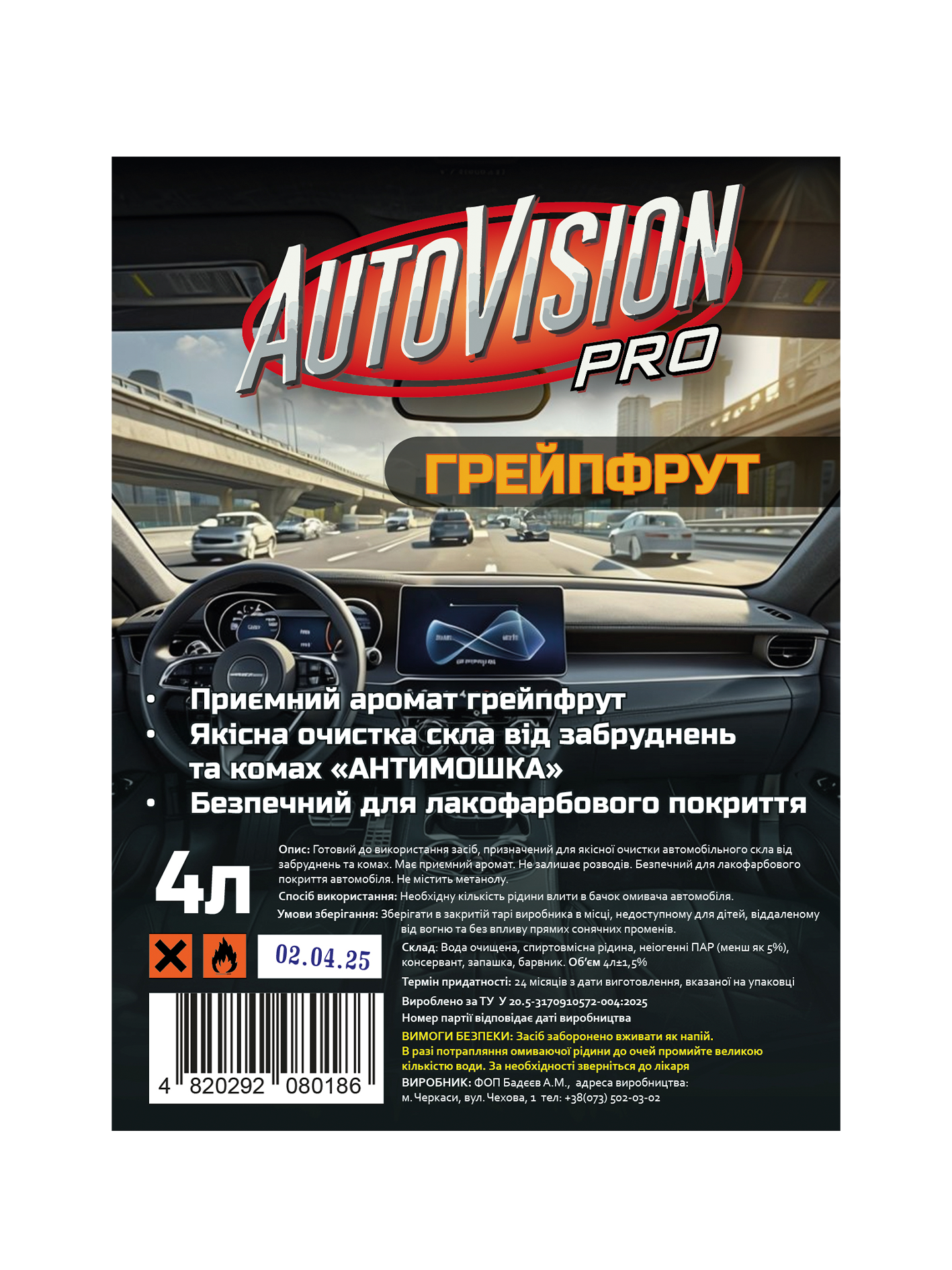 • Безпечний для лакофарбового покриття та пластикових елементів авто;